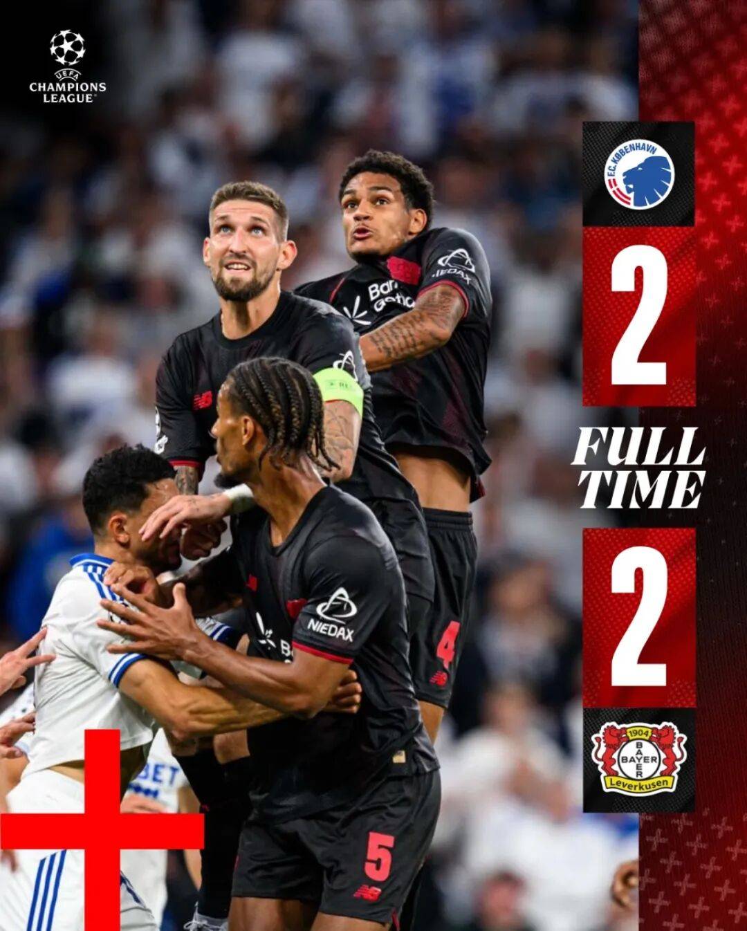 勒沃库森上轮德甲主场3-1击败法兰克福,这是主帅Kaspar Hjulmand上任后的首秀,格里马尔多任意球梅开二度,希克罚入点球,但安德里奇和费尔南德斯双双染红下场,帕拉西奥斯和特拉受伤。勒沃库森在本周四的欧冠联赛中客场2-2战平哥本哈根,费尔南德斯取代了帕拉西奥斯,从摩纳哥加盟的Eliesse Ben Seghir上演首秀,他取代了特拉。上半场哥本哈根打出快速反击,亨里克拉尔森之子乔丹拉尔森首开纪录。勒沃库森直到第82分钟才由格里马尔多扳平比分,这次进球方式依旧是直接任意球破门。哥本哈根的罗伯特头球破门再次超出比分,但埃切维里传中迫使哥本哈根的Pantelis Hatzidiakos自摆乌龙。